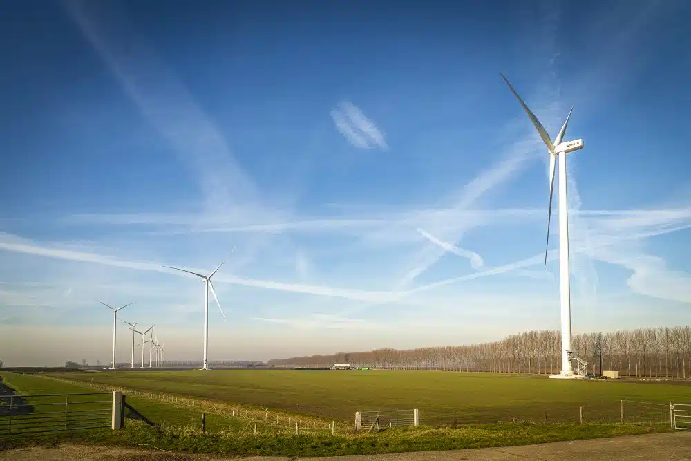 Nog een maand of vier, vijf en dan draaien in de Hogezandse Polder bij Numansdorp negen torenhoge windturbines. De bouw is in volle gang.