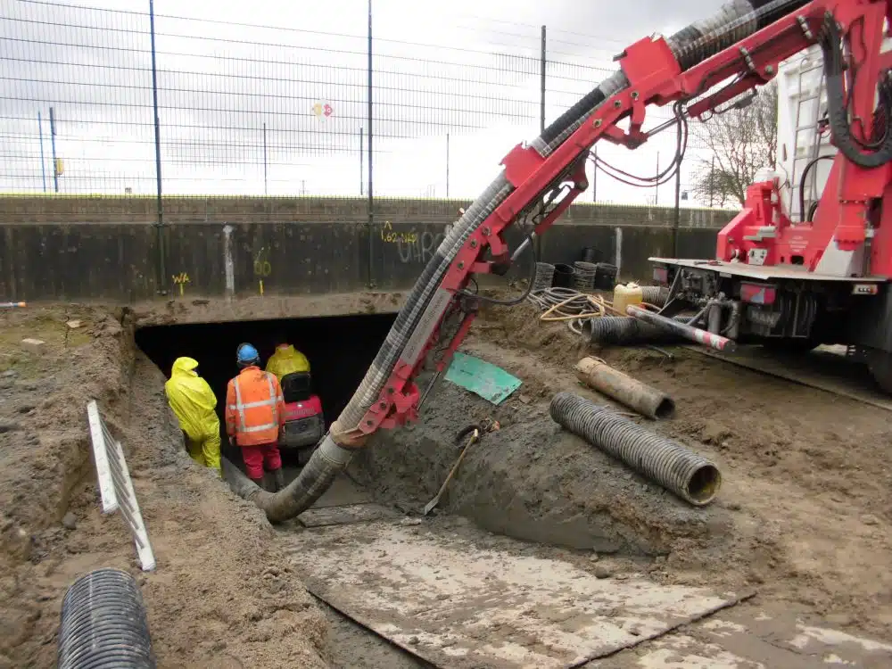 NAM is tussen het olieveld aan de Waalhaven te Rotterdam en Shell Pernis een nieuwe 4 inch (ø 114,3 mm / DN 100) ruwe olietransportleiding aan het aanleggen welke tussen de Groene Kruisweg en de Hendrik Troostbaan in de Buisleidingenstraat wordt aangelegd. Ondertussen is de gehele werkstrook afgerasterd en de teelaarde afgezet. Ook de rijbaan voor het werkverkeer is aangebracht. Behalve het lassen van de leidingen is men ook begonnen met de moeilijke punten in het tracé, de zogenaamde special points. Eén van de special points waar gewerkt wordt is een kruising waarbij bestaande buisleidingen onderlangs gekruist gaan worden door de nieuwe leiding. Om deze kruising te kunnen realiseren heeft aannemer Hak Leidingbouw ervoor gekozen om de grond tussen en onder de bestaande leidingen te ‘ontgraven’ met een zuigwagen. Deze zuigt de door grondwerkers met een schop losgemaakte grond weg, waardoor het risico op beschadiging van een bestaande leiding minimaal is.